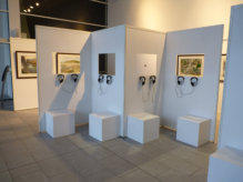 Installations sonores :Mix d’électronique (formation initiale), d’informatique et de montage audioExemple : 12 casques avec 6 bandes sons différentes qui tournent en boucle pendant 4 semaines(Exposition 6 tableau de Gildas Chasseboeuf au CAP de PLERIN)